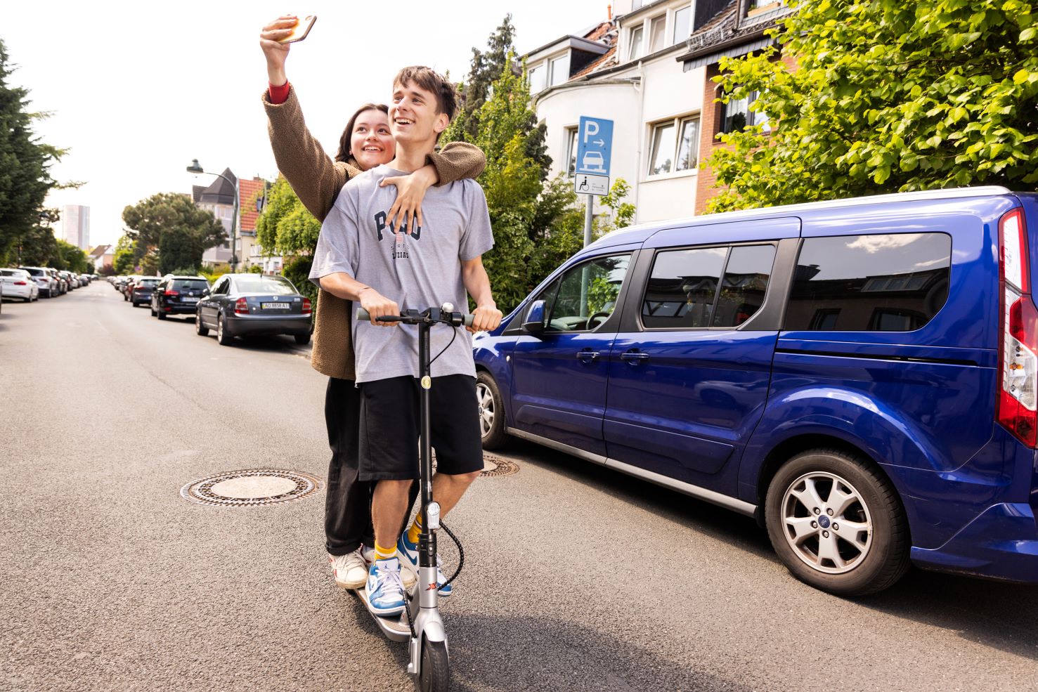 - Nur eine Person pro Scooter – Mitnehmen von Personen ist verboten